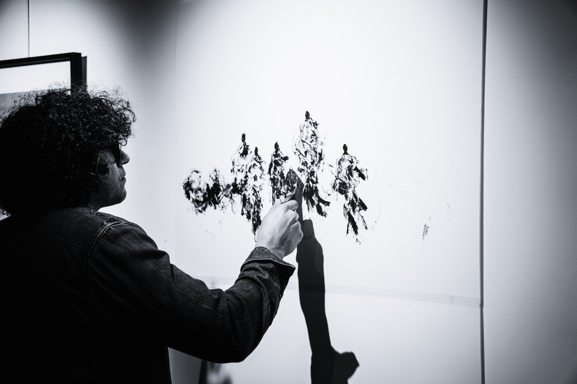 develops a singular visual language born from the union of impressionistic abstraction and a profound poetic and spiritual quest. In his works, black forms on white backgrounds become vibrational presences sensitive traces in which the gesture captures the energy of movement and silence.